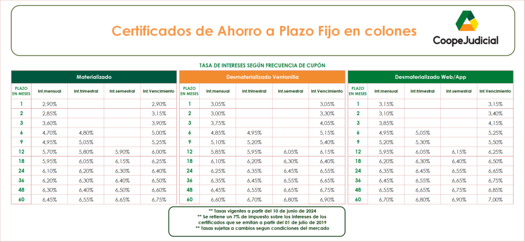 Son certificados digitales que se generan automáticamente desde la App CoopeJudicial o de la página web transaccional CJ En Línea. Genera intereses a lo largo del plazo y son depositados de forma automática en una cuenta denominada «Intereses de C.A.P». Custodia electrónica sin costo adicional.